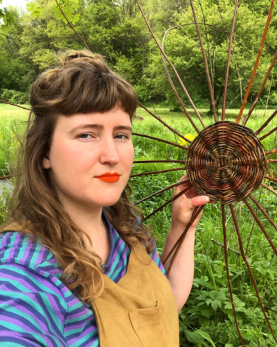 Anni Zylstra (she/they) is a folk singer, basketmaker, agroforester, and organizer based in the traditional homelands of the Oceti Sakowin and Ho-chunk in southern Wisconsin. She has spent the last decade collecting and teaching folk songs, running community music events, learning and teaching traditional crafts, organizing grassroots arts events, and building community in a variety of ways among rural queers and artists. Captivated by folk cultures of the world and what they have to teach us about community, creativity, death, and relating to the land, Anni looks to them as well as the queer and liberation-oriented visionaries of our time for inspiration on how to be in this world at such a wild moment of our collective history. On a typical day, you can find them at work in their studio, coppicing and tending to trees, or herding unruly ducks around the land where they live! Learn more at www.heartlandharmony.net/aboutanni.
